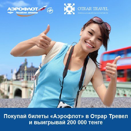 Акция! Покупайте билеты авиакомпании «Аэрофлот» в офисах Отрар Тревел или на сайте avia.otrar.kz и выигрывайте 200 000 тенге! В период с 07 июня по 19 июля 2018 г. при покупке билетов авиакомпании «Аэрофлот» Вы автоматически становитесь участником розыгрыша! Всего в акции разыгрываются 2 сертификата: на 200 000 тенге и 100 000 тенге. Если Вы не планируете покупать билеты, поделитесь новостью об акции в своих социальных сетях и участвуйте в розыгрыше 5 замечательных термосов! Обязательно используйте хэштег #otrartravel_aeroflot, чтобы мы отследи… — Читать дальше