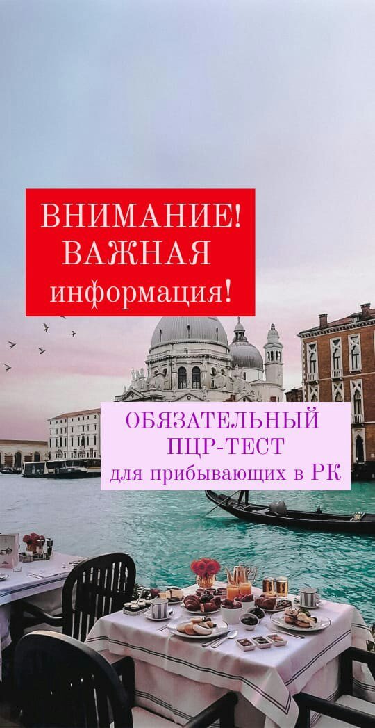 Уважаемые туристы, Информируем Вас о том, что ️с 26 октября 2020 года всем пассажирам, в том числе и гражданам Республики Казахстан, прибывающим авиарейсами из-за рубежа в Казахстан, теперь ️в обязательном порядке необходимо иметь справку ПЦР-теста о отобранного не ранее ️72 часов на момент пересечения государственной границы РК. ⠀ ‼️В случае отсутствия справки, пассажиры ️не будут допущены на рейс, вне зависимости от того, являются ли они гражданами РК или нет.
