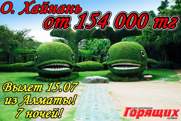 ГОРЯЩИЕ ТУРЫ! Турция из Алматы 8 августа на 7 ночей от 193 000 тг ВСЕ ВКЛЮЧЕНО! О.Хайнань из Алматы 12 августа на 7 ночей от 147 000 тг (без питания); от 160 000 тг (завтраки) (осталось 4 места) ОАЭ из Алматы 10 августа на 7 ночей от 124 000 тг (завтраки) Дополнительно оплачивается: виза 80$ МЕСТ МАЛО!!! В стоимость включено: перелет, проживание в отеле, указанный тип питания, трансфер *СТОИМОСТЬ УКАЗАНА НА 1 ЧЕЛОВЕКА ПРИ ДВУХМЕСТНОМ РАЗМЕЩЕНИИ! Магазин Горящих Путевок г. УСТЬ-КАМЕНОГОРСК ул. КАЙСЕНОВА 30а, 2 ЭТАЖ. ТЕЛ:,.