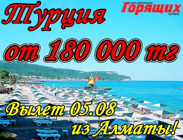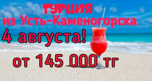 ГОРЯЩИЕ ТУРЫ!!! ТУРЦИЯ ИЗ УСТЬ-КАМЕНОГОРСКА! 4 АВГУСТА! 10 НОЧЕЙ! ВСЕ ВКЛЮЧЕНО! ОТ 145 000 ТГ! В стоимость включено: перелет, проживание в отеле, питание все включено, трансфер. Магазин Горящих Путевок Г. УСТЬ-КАМЕНОГОРСК ул. КАЙСЕНОВА 30а, 2 ЭТАЖ. ТЕЛ:,.