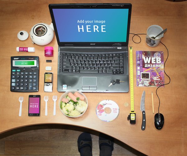 Awdee. Графический дизайн (30.05.2016): Cерия исконно русских мокапов для натуралов Никаких айфонов, смузи и бород. Только реализм будней отечественных юзеров и провинциальных дизайнеров. Пользуйтесь для душевной презентации своих проектов! Скачать.psd-пак можно по ссылке: