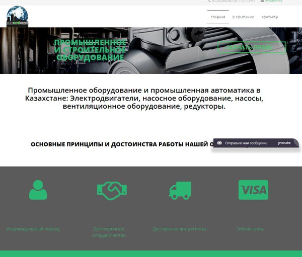 Сайт — Визитка для компании, которая занимается продажей пром. оборудования и автоматикой как в РК так и по СНГ.