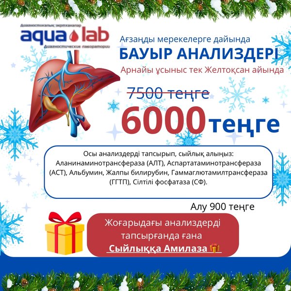 бщий — Холестерин — ЛПВП — Холестерин — ЛПНП — NA/K/Ca — ионизированный — Альфа амилаза крови — ОАК — АЛТ — АСТ — МНО — КФК — Фибриноген Только в июле, стоимость пакетного предложения — 8500 тенге Стоимость анализов по отдельности — 12200 тенге. Стоимость пакетного предложения — 10200 тенге. Данный пакет можно сдать во всех приемных пунктах лаборатории AQUALAB! Проверьте свое здоровье!