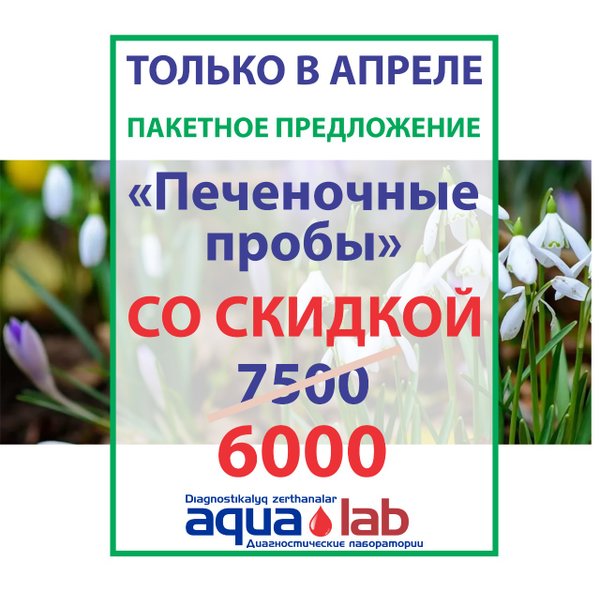 По многочисленной просьбе клиентов, в апреле месяце мы запускаем акцию на пакетное предложение «Печеночные пробы» С 1 по 30 апреля вы сможете сдать пакетное предложение всего ЗА 6000 тенге Пакет состоит из следующих анализов: — АЛТ — АСТ — ГГТП — Альбумин — Билирубин прямой — Билирубин общий — Щелочная фосфотаза — ОАК — Фибриноген Стоимость анализов по отдельности — 9 000 тенге Стоимость анализов в пакетном предложении — 7 500 тенге Стоимость акционного пакета — 6 000 тенге Проверьте свое здоровье!