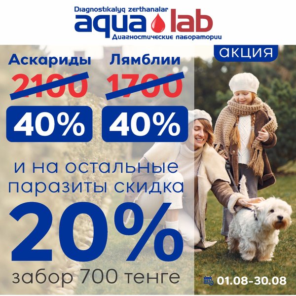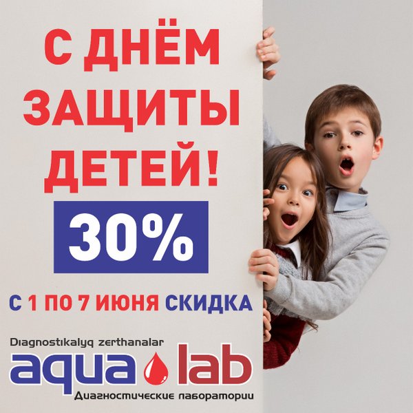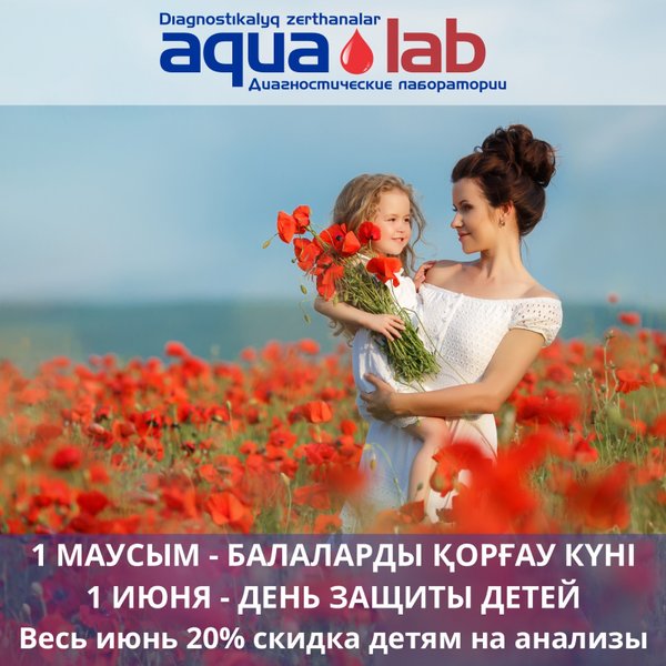 AQUALAB зертханасы Балаларды қорғау Күніне орай 1⃣ маусым мен 3⃣0⃣ маусым аралығында 16 жасқа дейінгі балаларға жалпы анализдерге 20% жеңілдік береді! Шақ Бақытты болсын! ____________________________________ Лаборатория AQUALAB в честь Дня защиты Детей с 1⃣ по 3⃣0⃣ июня дарит 20% скидку детям до 16 лет Пусть детство будет счастливым!
