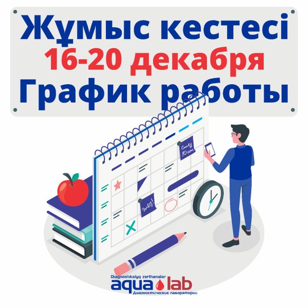 Мереке күндеріне арналған жұмыс кестесі: 15 желтоқсан — стандартты режим бойынша жұмыс 16 -17 желтоқсан — демалыс, мереке күні. 18 желтоқсан – сенбі күнінің кестесі; ----------------------------------------------------------— График работы на праздничные дни: 15 декабря — работаем по стандартному режиму; 16 -17 декабря — выходной, праздничный день; 18 декабря – по субботнему графику;
