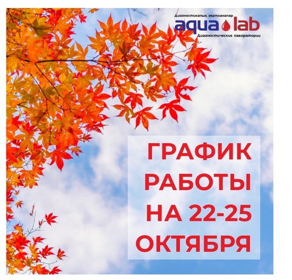 График работы на праздничные дни: 28 августа — работаем по субботнему графику; 29 августа — работают пункты в г.Алматы по адресу: Ул.Макатаева 196 Пр.Сейфуллина 287 Ул.Розыбакиева 72 30 августа — работают пункты в г Алматы по адресу: Ул.Макатаева 196 Пр.Сейфуллина 287 Ул.Розыбакиева 72 31 августа — работаем в стандартном режиме. Напоминаем вам, что в вышеуказанных приемных пунктах ведётся забор на ПЦР COVID, а также принимаем и на другие анализы.