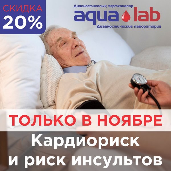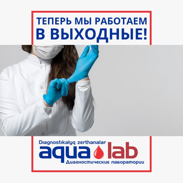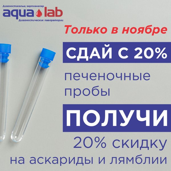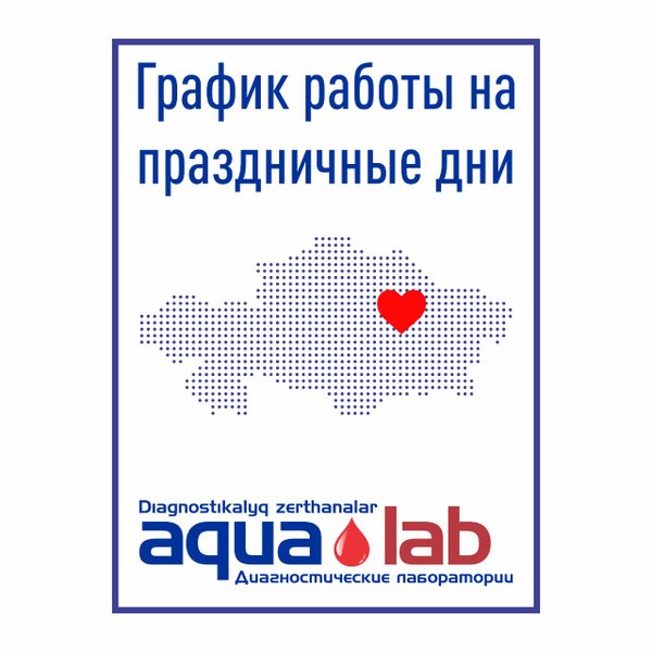 Aqualab зертханасы гормондар және ісік маркерлері талдамаларына 1 наурыздан 31 наурызға дейін 20% жеңілдік береміз! _______________________________________________________ Лаборатория Aqualab дарит 20% скидку на гормоны и онкомаркеры с 1 по 31 марта! Во всех приемных пунктах лаборатории