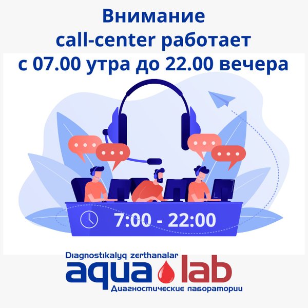 Внимание! У нас отличная новость Теперь рабочий график call- center с 07:00 до 22:00, вы сможете узнать по телефону : Адреса приемных пунктов График работы Стоимость анализов Правило подготовки к сдаче анализов Скидки Акции Вызов на дом А также оставить обратную связь по сервису и обслуживанию!