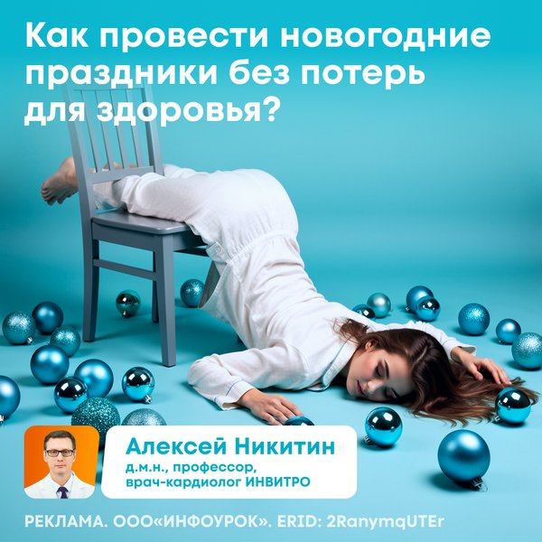 Erid: 2RanymqUTEr Праздники дарят радость А ещё — испытания для организма: переедание, лишний сахар и алкоголь, недосып, стресс и снижение активности. Всё это может быстро сказаться на самочувствии и энергии уже в первые недели нового года. Поэтому приглашаем вас сегодня на новый вебинар спецпроекта «Здоровье» совместно с образовательным маркетплейсом «Инфоурок». Тема вебинара: «Здоровье в праздники: как избежать ошибок и сохранить энергию» Спикер: Алексей Никитин, доктор медицинских наук, профессор, врач‑кардиолог ИНВИТРО О чём поговорим? О… — Читать дальше