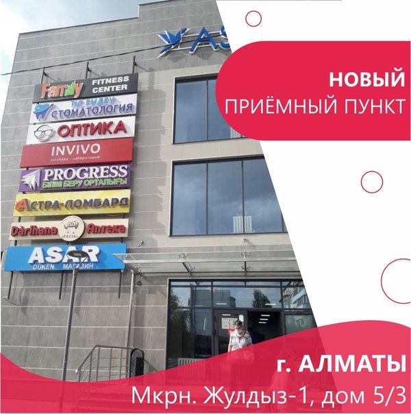 Открылся приёмный пункт в городе Алматы! ⠀ Ждём вас по адресу: г. Алматы, МКР Жулдыз-1, дом 5/3 в здании ТЦ «Аспан»⠀ ⏰График работы: Пн-Пт 7.30—15.30, Сб 8:00 -13:00 ⠀ Напоминаем, что большинство исследований сдается натощак до 11:30 ⠀ Забор биоматериала оплачивается отдельно — 550 тг. __ INVIVO — сеть лабораторий в Казахстане — 5% бонусов на накопительную карту