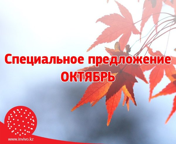 Қазан айында өз денсаулығыңызды тексеруге шақырамыз. Инвиво зертханасында болашақ аналар үшін зерттеу пакетіне арнайы баға белгіленген. Сонымен қатар, Ішек тобының қоздырушысы талдауына 20%-дық жеңілдікпен арнайы баға әрекет етеді. Тексеруді бүкіл Қазақстан бойынша 150-ден астам қабылдау пунктілерінің бірінде жеңілдікпен өтіңіз. Талдау пакеттерінің бағасы мен құрамы туралы толығырақ Инвиво. Сіздің денсаулығыңызға деген қамқорлықпен