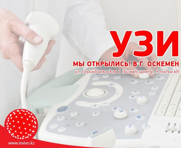 іңіз, өз ағзаңыздың УД-зерттеуін кәсібқой мамандарға сеніп тапсырыңыз! Өскемен қ. тұрғындарына ағзаның УДЗ және зертханалық диагностикасы арқылы өзденсаулығыңыздың жағдайын бақылауғаенді әлдеқайда ыңғайлы! Мекенжайы: Серікбаев к-сі, 1-үй УДЗ-бөлмесі туралы толық ақпарат -> Инвиво. Сіздің денсаулығыңызға деген қамқорлықпен