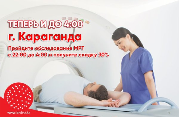 тау қ. тұрғындары! Сізде 1,5 Тесла (Toshiba)қуаттылықпен МРТ аппаратымен сапалы және дәл зерттеу жасауға мүмкіндігіңіз пайда болды. Сөйтіп, бүгінгі күні Инвиво ВДП диагностикалық орталығында сіз МРТ, КТ, УДЗ зерттеулерін және зертханалық талдауларды өте аласыз. Бұл орталық емделушілерге one stop shop қағидаты бойынша медициналық диагностикалық қызметтердің толық тізімін бір жерде алуына мүмкіндік береді. Толығырақ -> Инвиво. Сіздің денсаулығыңызға деген қамқорлықпен