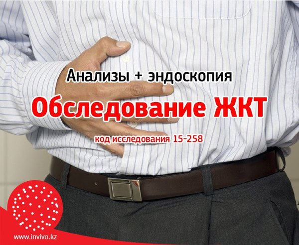 ий в пакете 6 890 KZT (обычная 8 800 KZT) Код пакета исследований — 15—258 Подробнее о пакете -> #Инвиво. С заботой о вашем #Здоровье. ------------------------------------------------------------------- Қыжыл, кекірік, асқазандағы ауырлық, эпигастрияның ауруы, жүрек айнуы бұл сезімдер сізге таныс па? Егер осы белгілерді жиі байқасаңыз, өз денсаулығыңызды бүгіннен бастап ойлаңыз, себебі біздің денсаулығымыз және хал-жайымыздан өмір сүру ұзақтығы тәуелді. Алматы қ. тұрғындары үшін біз тұрақты зерттеу пакетін ойлап шығардық: Хеликобактер пилори жұқпасына талдау тапсыру (IgA Helicobacter Pylory антиденелері, ИФТ) Рак антигенін СА 72—4 анықтауға көмектесетін талдау Бейне-гастроскопия Пакеттегі зерттеулер бағасы 6 890 KZT (қарапайым 8 800 KZT) Зерттеулер пакетінің коды 15—258 Пакет туралы толығырақ -> Инвиво. Сіздің денсаулығыңызға деген қамқорлықпен