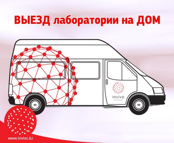 елушілер! Біз уақытыңызды бағалаймыз! Зертханамыздың мамандары емделушіге ыңғайлы уақытта келіп, қанды биоматериалды алуға арналған біржолғы вакутейнермен алады. Жылдам Ауыртпай Қауіпсіз Талдау нәтижелерін төлем терминалдары арқылы E-mail бойынша біздің сайттан ала аласыз. Қызметпен пайдаланыңыз! Өтінімді 258 83 83 нөмірі бойынша немесе Инвиво. Сіздің денсаулығыңызға деген қамқорлықпен