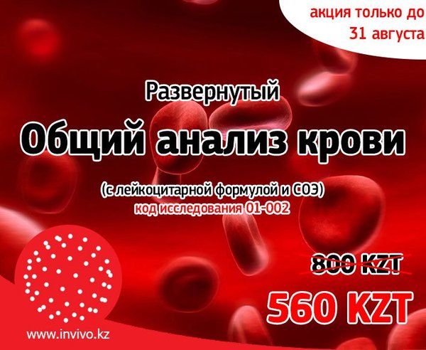 ru/kaz Внимание! Один из самых востребованных анализов со скидкой 30% до конца августа! Пройдите развернутое исследование «Общий анализ крови» с лейкоцитарной формулой и СОЭ по специальной цене 560 KZT. Подробная информация на сайте: и по номеру #Инвиво. С заботой о вашем #Здоровье. ------------------------------------------------------------------- Назар аударыңыздар! Тамыздың аяғына дейін ең танымал талдаудың бірі 30%-дық жеңілдікпен! Лейкоциттік формула және ЭШЖ мен бірге Қанның жалпы талдауы толық зерттеуін арнаулы бағамен 560 KZT өтіңіз. Т… — Читать дальше