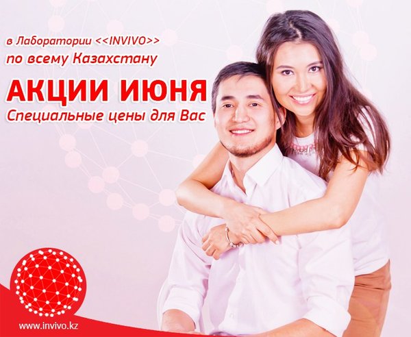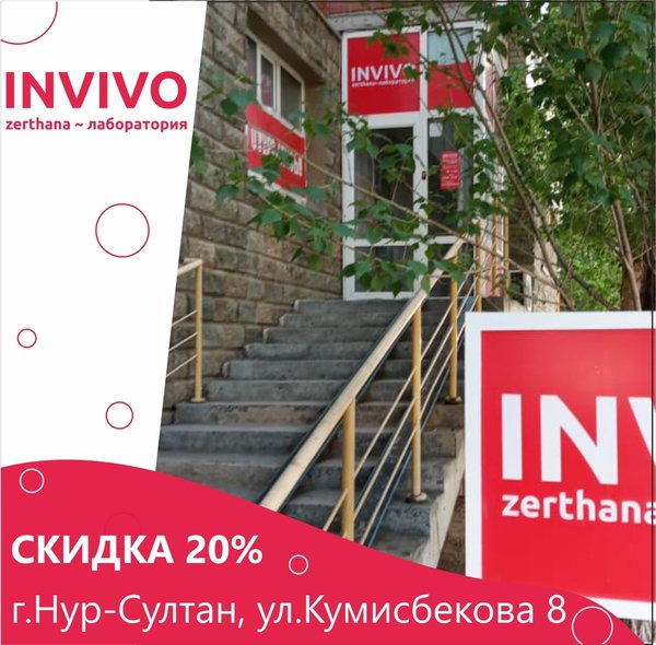 Только до конца июня скидка 20% в приёмном пункте по адресу: г.Нур-Султан, ул. Кумисбекова, 8 __ INVIVO — сеть лабораторий в Казахстане — 5% бонусов на накопительную карту -10% скидки при оплате банковской картой на сайте