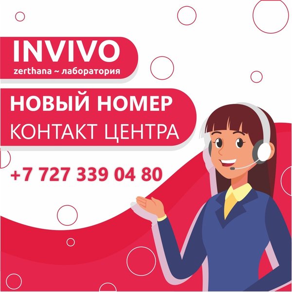 У нас изменился номер контакт-центра. В целях улучшения качества связи, мы перешли на новый телефонный номер: __ INVIVO — сеть лабораторий в Казахстане — 5% бонусов на накопительную карту