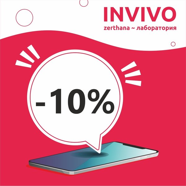 В честь открытия нового приёмного пункта в г. Алматы, дарим скидку 10% на все исследования. Акция действительна только по адресу ул. Маркова 38А, до 30 июня включительно. __ INVIVO — сеть лабораторий в Казахстане — 5% бонусов на накопительную карту -10% скидки при оплате банковской картой на сайте