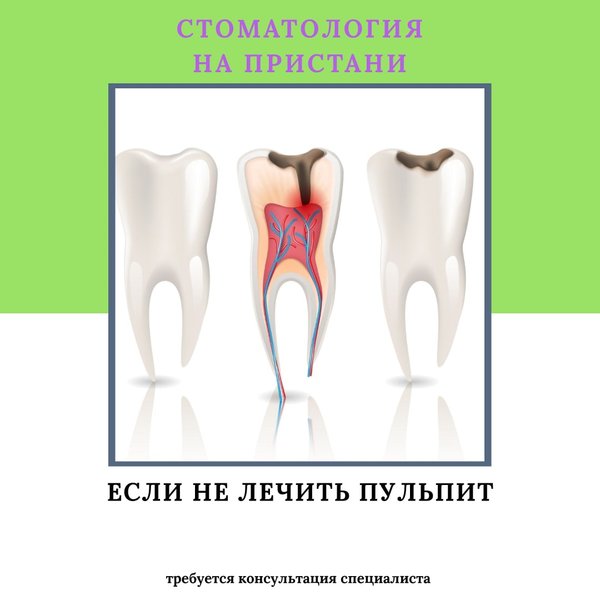 В первую очередь – пульпит это острая боль и сильный стресс, так как присутствует болевой синдром. Если его не лечить, инфекция проникает в окружающие корень зуба ткани и развивается периодонтит, может сформироваться радикулярная киста. Также, без лечения продолжают разрушаться твердые ткани зуба. В результате его придется удалять. Больной зуб будет нагрузкой для иммунной системы, источником инфекции и неприятного запаха. ️Пульпит обязательно нужно лечить! -----‐‐--------------------------------------------- ️529235 ул.Кабанбай Батыра… — Читать дальше