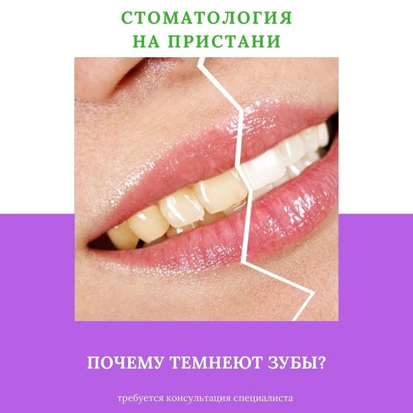 огут некоторые внутренние системные заболевания применение в процессе лечения некоторых лекарственных средств, в том числе антибиотиков тетрациклинового ряда с возрастом происходит уменьшение толщины слоя эмали и выработки организмом более темного оттенка дентина, что и способствует потемнения зубов у людей пожилого возраста удаление нерва и пломбирование зубного канала. Потемнеть может не только сам зуб, но и область десны, соприкасающаяся с ним. Причиной этому может стать неправильная установка пломбируемого материала. В случае возникновения подобной проблемы необходимо сразу обращаться к специалисту, и чем раньше вы это сделаете, тем лучше для вас. Причем как с эстетической, так и с материальной стороны. Стоматолог при помощи специального оборудования легко сможет избавить вас от внешнего налета на зубной эмали, выявит внутреннюю причину образования пигментации. -----‐‐--------------------------------------------- ️766—535