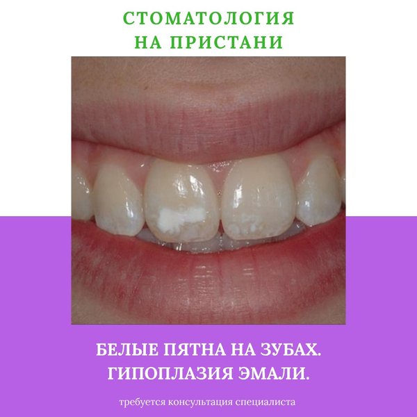 жет быть разной. Как отличить от кариеса и флюороза? Сравниваем попарно, одинаковые зубы правой и левой стороны. Пятна на них будут на одинаковом уровне и симметрично. На разных группах зубов пятна могут быть на разном уровне. Гипоплазия чаще поражает все зубы. Но, иногда бывает только на одном-двух. Это случается в результате повреждения зачатков постоянных зубов при травмах- чаще всего страдают резцы верхней челюсти. на втором месте по частоте поражения стоят премоляры. Как лечить гипоплазию? Если это пятна, то никак. Это чисто эстетический дефект, который не опасен. Эдакий шрам в эмали. Можно чуть сгладить контраст отбеливанием, осветлив окружающую эмаль. -----‐‐---------------------------------------------