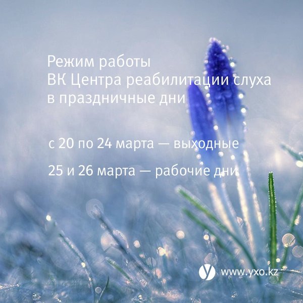 Поздравляем с наступающим весенним праздником Наурыз и желаем вам счастья! ⠀ Режим работы Центр реабилитации слуха в праздничные дни: ⠀ с 20 по 24 марта — выходные дни 25 и 26 марта — рабочие дни ⠀ ⠀ ⠀ ⠀ ВК Центр реабилитации слуха ⠀ г. Усть-Каменогорск, ул. Потанина, 18, телефон, ⠀ Наш сайт ⠀ ⠀ ⠀