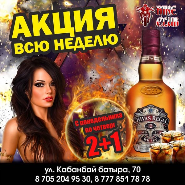 Зажигаем!! BIKE CLUB г.Усть-Каменогорск, Кабанбай Батыра,70 Работаем БЕЗ ВЫХОДНЫХ с 18:00—06:00 с пн-чт до 23:00 вход свободный! —---------------------------------------------------------------------