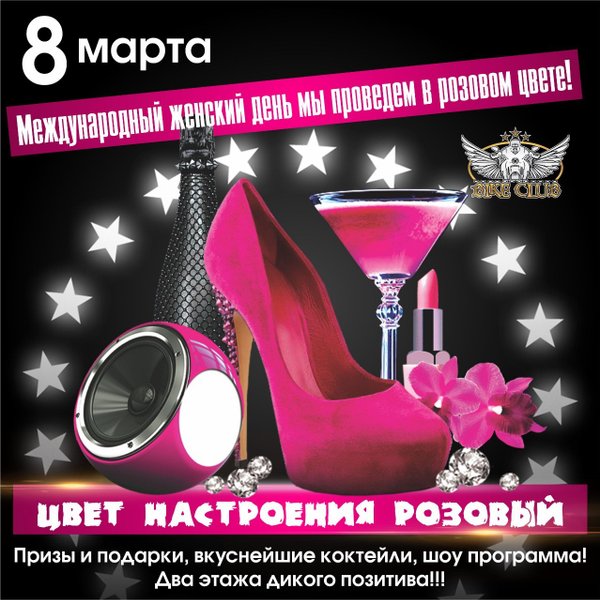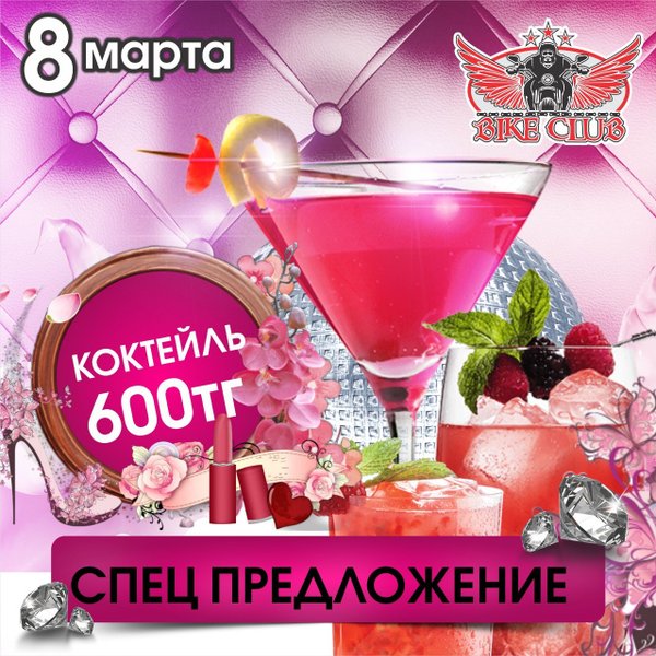 Девочки-красавицы! Вот он! Самый женский праздник! Весь день только для вас! А у нас цвет настроения РОЗОВЫЙ! Два этажа веселья! Призы и подарки! Вкусняшки на баре, зажигательная шоу-программа! И все для вас, наши любимые!!!!! BIKE CLUB г.Усть-Каменогорск, Кабанбай Батыра,70 Работаем БЕЗ ВЫХОДНЫХ с 18:00—06:00 с пн-чт до 23:00 вход свободный! —---------------------------------------------------------------------