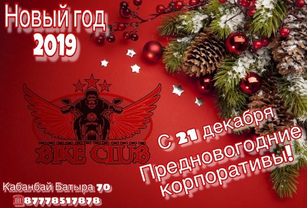 Дорогие друзья!!! Приглашем Вас на предновогодние корпоративы!!!! ГАРАНТИРУЕМ Море безудержного веселья, новогоднее настроение, улыбки, заразительный смех и только самые позитивные эмоции!!! BIKE CLUB г.Усть-Каменогорск, Кабанбай Батыра,70 Работаем БЕЗ ВЫХОДНЫХ с 18:00—06:00 с пн-чт до 23:00 вход свободный! ⠀---------------------------------------------------------------------