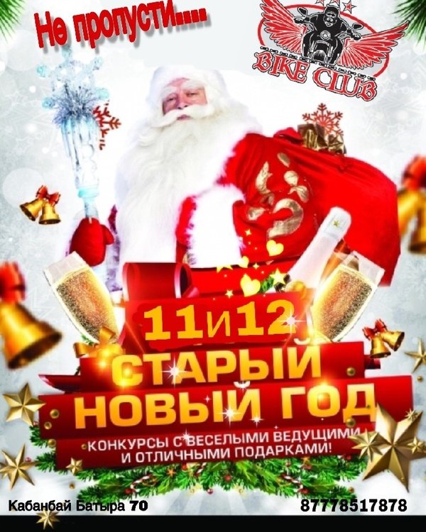 ЕХУУУУ!!!! Ну что, готовы продолжать наше безумное веселье??? Ждем вас 11 и 12 января- отмечаем СТАРЫЙ НОВЫЙ ГОД!!! Отличные подарки, заводные танцы, классные ведущие! И все это ДЛЯ ВАС!!! Локация- ваш любимый БАЙК КЛУБ! BIKE CLUB г.Усть-Каменогорск, Кабанбай Батыра,70 Работаем БЕЗ ВЫХОДНЫХ с 18:00—06:00 с пн-чт до 23:00 вход свободный! ⠀---------------------------------------------------------------------