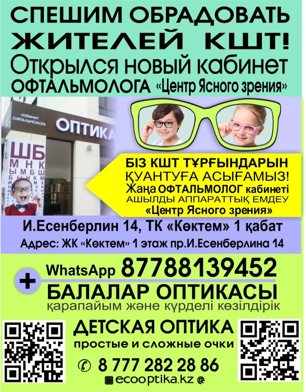 ️ пр. Есенберлина 14, КШТ, Центр ясного зрения