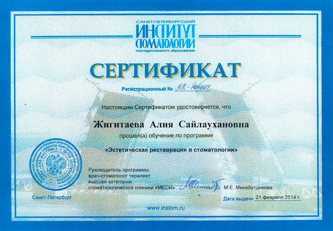 - Могу ли я ознакомиться с сертификатами Жигитаевой Алии Сайлаухановны?