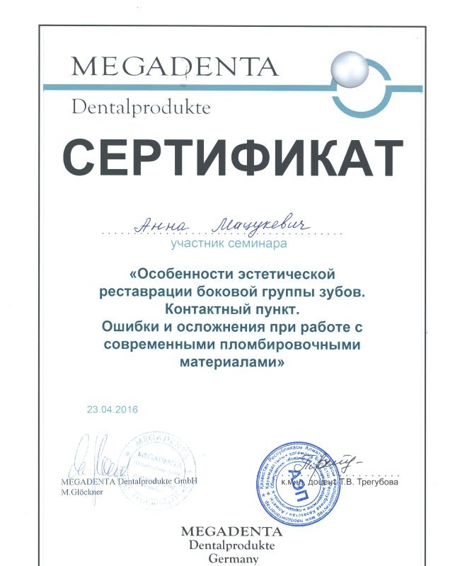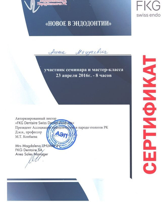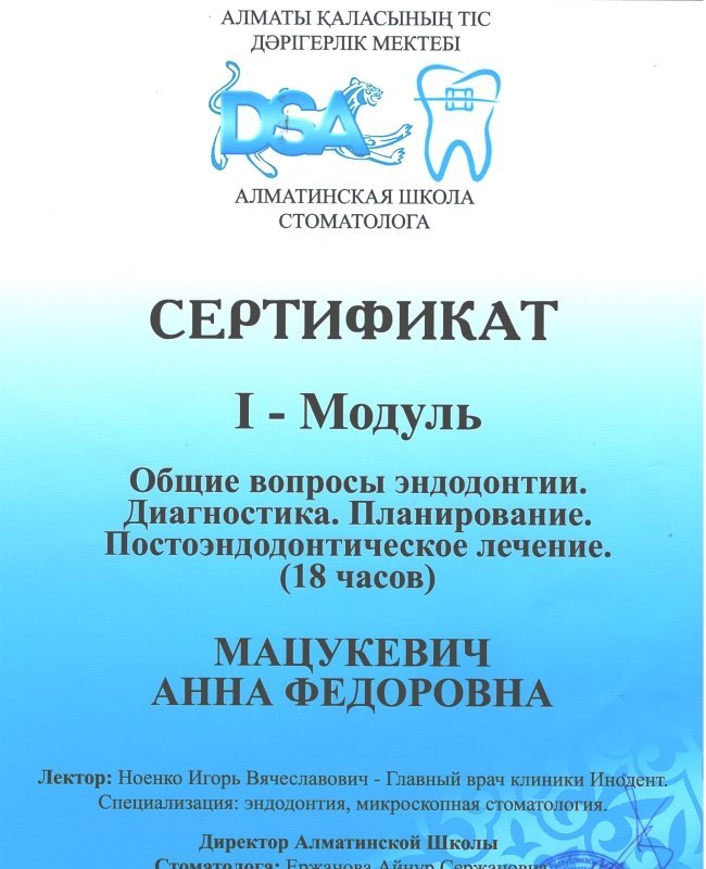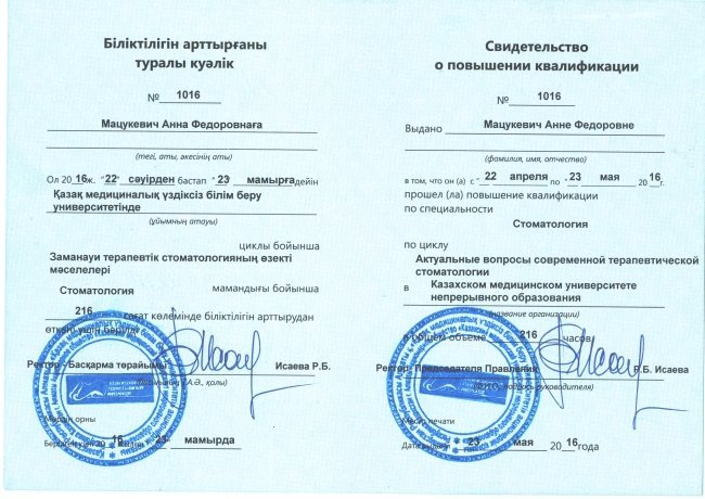 - Есть ли у Мацукевич Анны Федоровны необходимые сертификаты?