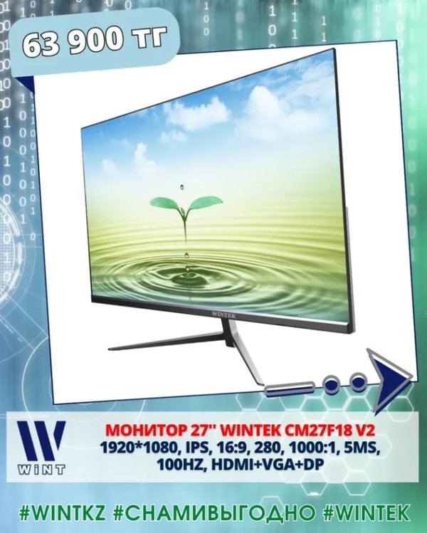 авную смену кадров, минимизируя эффект размытия при движении. Углы обзора 178°/178° позволяют сохранять точную цветопередачу независимо от положения пользователя. 63 900 тенге — ВИНТ — с нами выгодно!