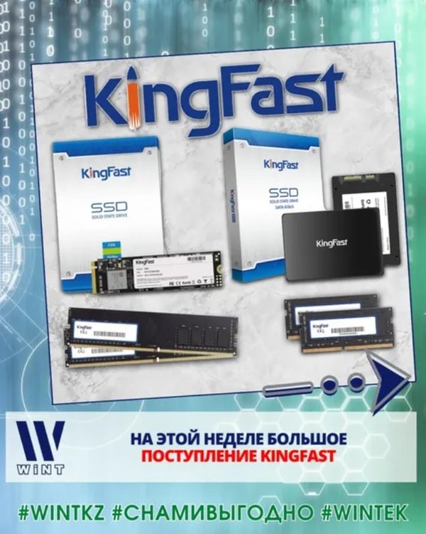 На этой неделе получаем на склад в Усть-Каменогорске SSD (SATA) и память (DDR3/DDR4/DDR5) KingFast!!! — ВИНТ — с нами выгодно!