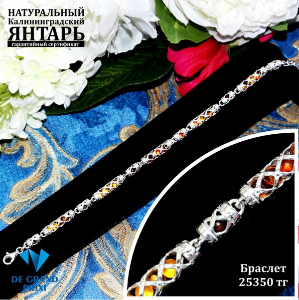 БРАСЛЕТЫ в серебре с натуральным Калининградским ЯНТАРЕМ ---