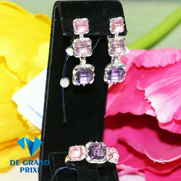 Шикарный набор из серебра, с розовыми сапфирами и аметистами -------- Цена набора 23940 тг Размер кольца 18,5 ------- degrandprixi