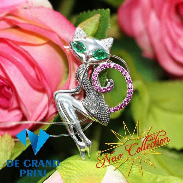 Броши из серебра со СКИДКОЙ 40% Брошь — кошечка с цветными фианитами и эмалью Брошь — балерина с красными фианитами ---