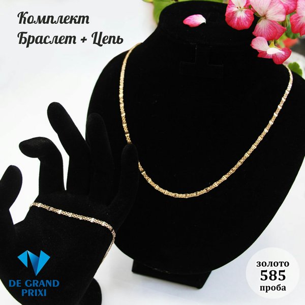 Комплект ЦЕПЬ + БРАСЛЕТ из золота 585 Золотые украшения никогда не выходят из моды. Прекрасный комплект, выглядит романтично и женственно --- Рассрочка от DE GRAND PRIXI и Нурбанка, без процентов и переплаты! ---