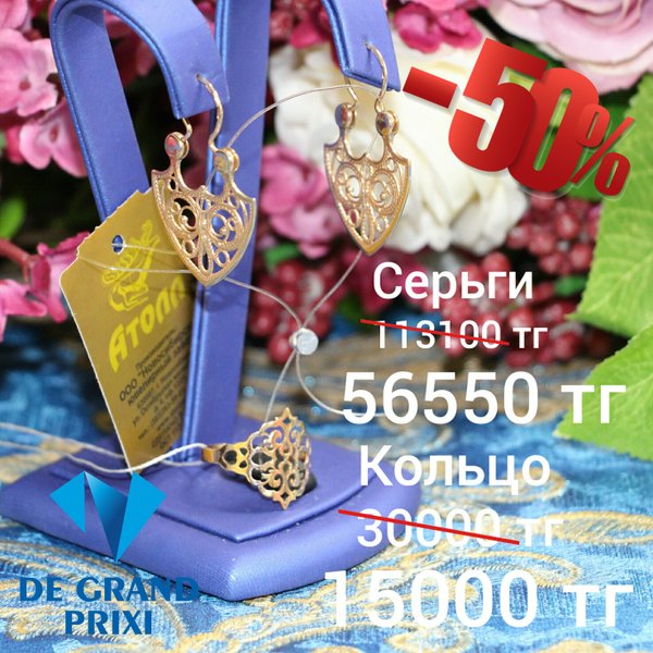 Только до 31 марта — СКИДКИ до 50% на изделия из золота и серебра --- Колье на леске цена 20220 тг Серьги спрашивайте в наших ювелирных салонах ---