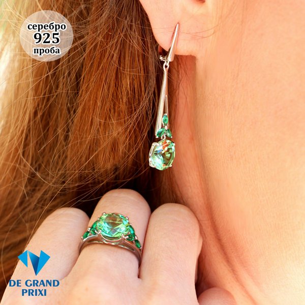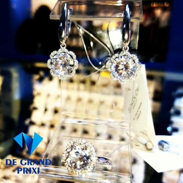 Шикарный набор из серебра с фианитами --- Кольцо р-р 18,5, цена 7475 тг Серьги, цена 14235 тг --- degrandprixi