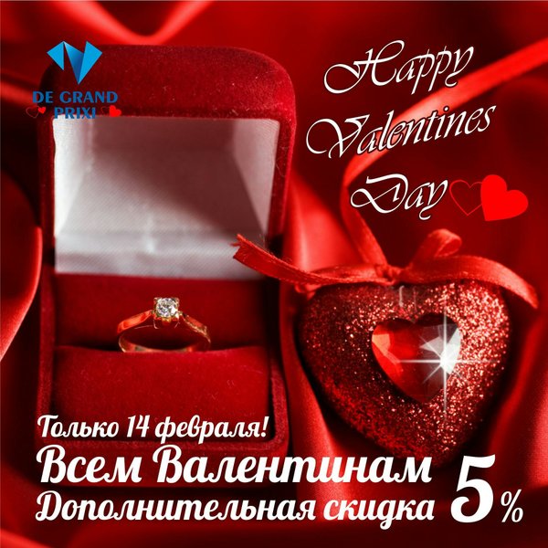 Пусть Ваши сердца согревает любовь и нежность, теплые руки, добрая улыбка и взгляд любимого человека --- Только сегодня, 14 февраля, дарим дополнительную СКИДКУ 5% для всех женщин и мужчин с именем Валентин и Валентина. ---