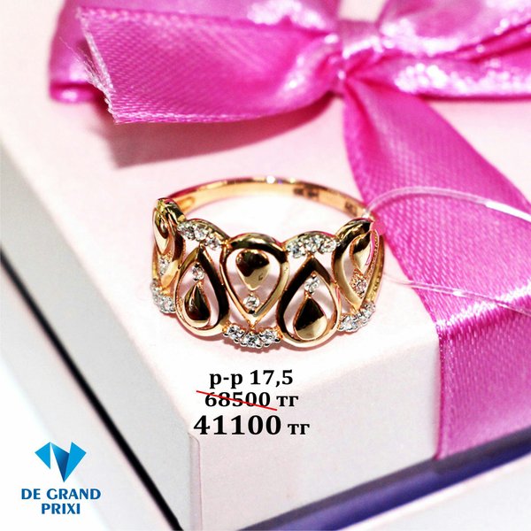Украшение в имидже женщины — это маленькая изюминка, которая подчеркивает ее непосредственную индивидуальность Золотые кольца с праздничной СКИДКОЙ 40% Во всех ювелирных магазинах DE GRAND PRIXI ---