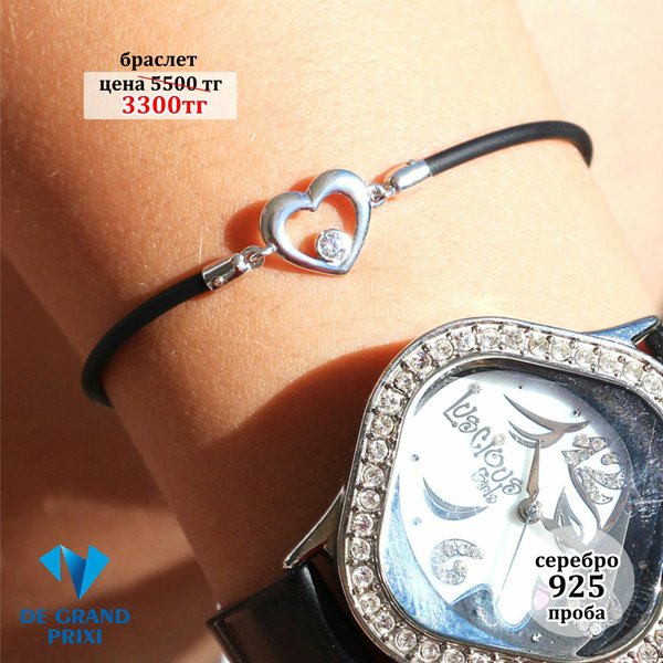 Браслеты из серебра :«Сердце» и «Музыкальный ключ» на шнуре 1. Размер- 18. Цена 3300 тг 2. Размер - 17. Цена 3180 тг ----