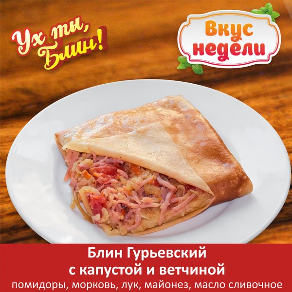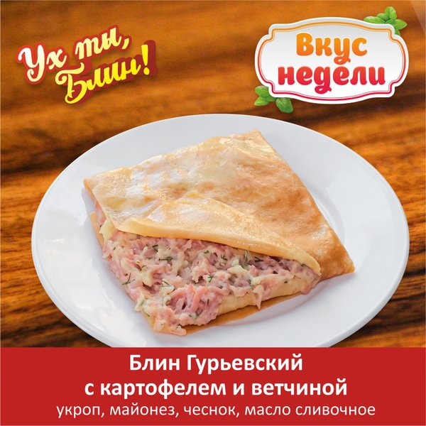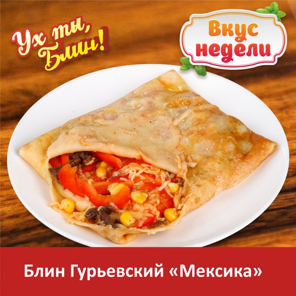 БЛИН НЕДЕЛИ! Продолжаем радовать вас новыми вкусами блинчиков С 5 по 11 ИЮНЯ в наших кафе вас ждет БЛИН ГУРЬЕВСКИЙ «МЕКСИКА»! Яркий состав порадует вас своим интересным вкусом — говядина, лук, кукуруза, болгарский перчик, перец чили, сыр и кетчуп - ммм, как вкусно! Стоимость — 1090 тенге Попробовать это блюдо можно в кафе по адресам «Пицца Блюз», ул. Казахстан, 64, «Пицца Блюз», ул Утепова, 27а, «Масленица», ул. Кайсенова, 117а,