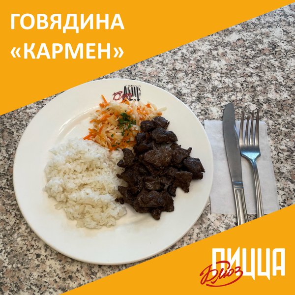 Кусочки филе говядины, маринованные с чесночком и букетом специй, в соевом соусе любят все. «Кармен» — абсолютный фаворит наших гостей и лидер продаж среди вторых блюд наших кафе.