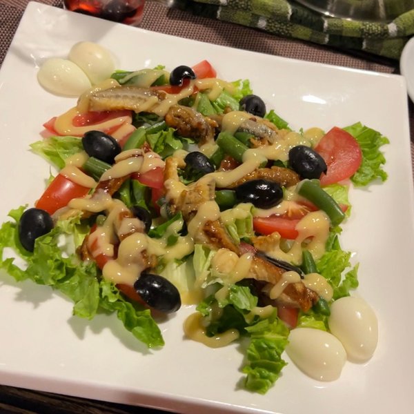 Необычно вкусный и аппетитный салат «Нисуаз» с угрем В составе салата интересное сочетание стручковой фасоли, помидорок черри, маслин, перепелиных яичек и лимонно-горчичного соуса, а пикантную сладковатую нотку придает угорь Стоимость — 3490 тг Приходи за вкусом в ресторан «Imbeer'»! ⠀ Адрес: ул. Казахстан, 64 ⏰ Режим работы: ежедневно с 11:00 до 24:00 Телефоны доставки: 25-95-02, Меню: imbeer.pizza-blues.kz