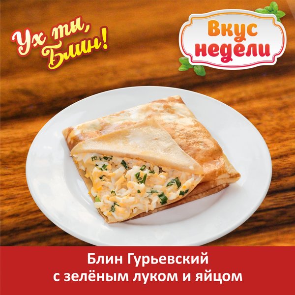 С 27 марта по 2 апреля доступен к заказу БЛИН ГУРЬЕВСКИЙ с зеленым луком и яйцом!